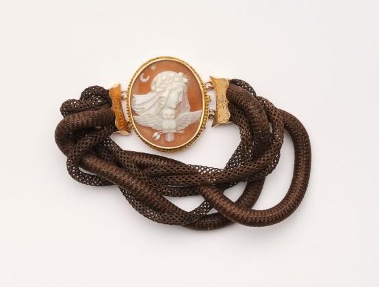 Armband aus geflochtenem braunem Haar und Kamee mit Allegorie der Nacht