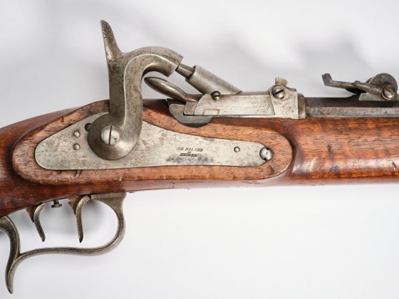 Vom Vorderlader mit Perkussionsschloss zum Hinterlader nach dem System Milbank Amsler umgeändertes Gewehr.