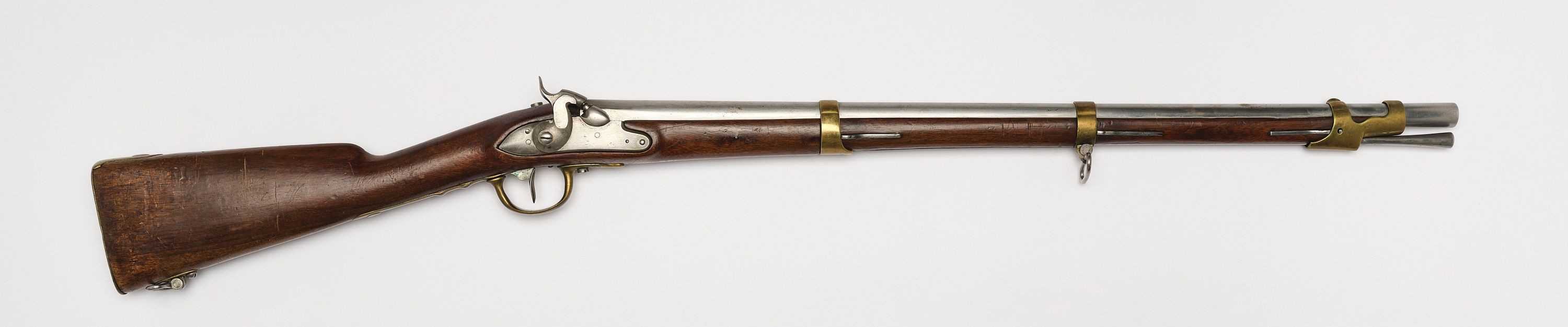 Vorderladergewehre der eidg. Ordonnanz von 1817, meist französischer Herkunft mit Steinschlosszündung, mit welchen die kantonalen Milizen bewaffnet waren, erfuhren im 19. Jh. mehrfache Ertüchtigungen. So durch den Beschluss des eidgenössischen Kriegsrats vom 13. April 1842, gemäss welchem die Waffen zur Optimierung mit einer Perkussionszündung aufzurüsten waren. Ebenso wurden sie mit Zündhütchen und Piston ausgestattet. Vorliegendes Exemplar weist diese Eingriffe auf.