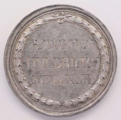Rs.: In mehrfachem Linienkreis die gravierten Angaben «RVDOLFVS / HVLDRICVS / MDCCXCII» (Rudolf Ulrich 1792) in stilisiertem Lorbeerkranz.