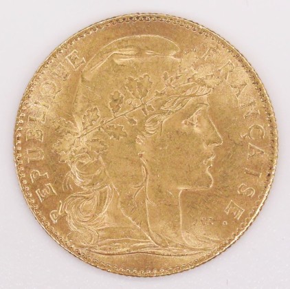 Münze: 10-Francs-Stück der Dritten Republik Frankreich, geprägt in Paris, aus dem Nachlass von Karl Asmund Kappeler (1844–1924), Kaufmann in Kolumbien