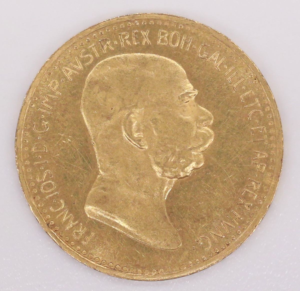 Münze: 10-Kronen-Stück des Kaisertums Österreich, geprägt in Wien zur Zeit von Kaiser Franz Joseph I. (1848–1916), aus dem Nachlass von Karl Asmund Kappeler (1844–1924), Kaufmann in Kolumbien
