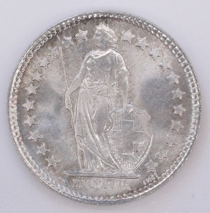 Münze: 1/2-Franken-Stück der Schweizerischen Eidgenossenschaft, geprägt in Bern