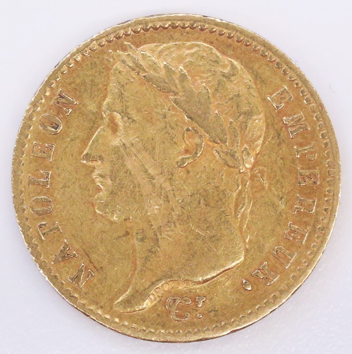 Münze: 20-Francs-Stück des Ersten Kaiserreichs Frankreich, geprägt in Paris zur Zeit von Kaiser Napoléon I. (1804–1814/15), aus dem Nachlass von Karl Asmund Kappeler (1844–1924), Kaufmann in Kolumbien