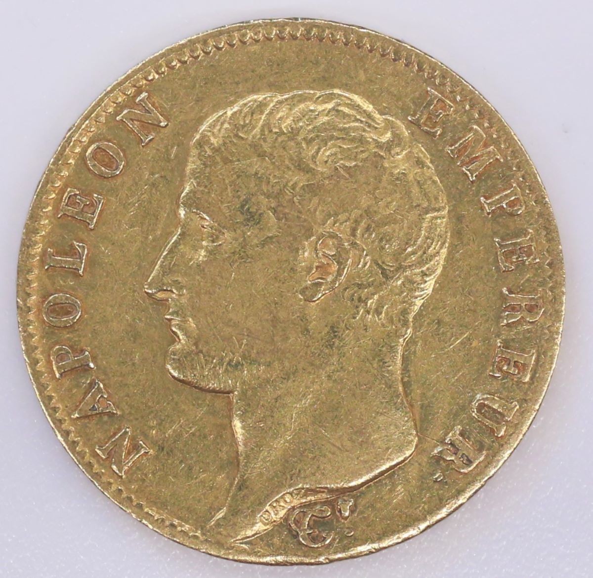 Münze: 20-Francs-Stück des Ersten Kaiserreichs Frankreich, geprägt in Paris zur Zeit von Kaiser Napoléon I. (1804–1814/15), aus dem Nachlass von Karl Asmund Kappeler (1844–1924), Kaufmann in Kolumbien
