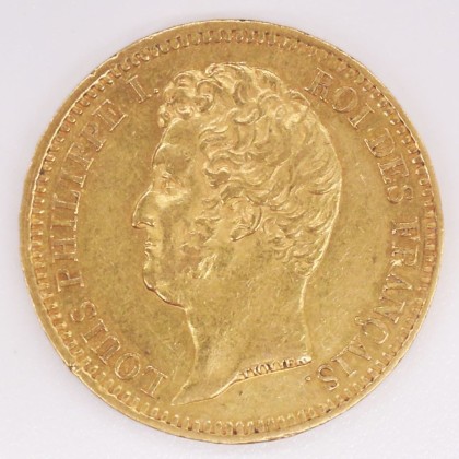 Münze: 20-Francs-Stück des Königreichs Frankreich, geprägt in Paris zur Zeit von König Louis-Philippe I. (1830–1848), aus dem Nachlass von Karl Asmund Kappeler (1844–1924), Kaufmann in Kolumbien