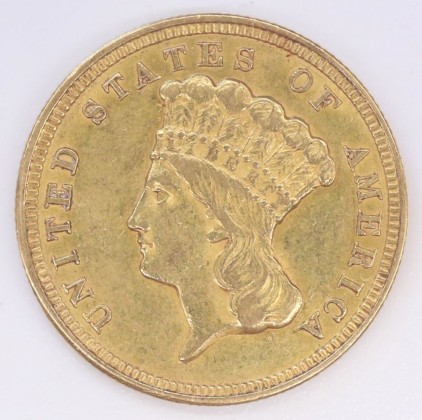 Münze: 3-Dollar-Stück der Vereinigten Staaten von Amerika (USA), geprägt in Philadelphia, aus dem Nachlass von Karl Asmund Kappeler (1844–1924), Kaufmann in Kolumbien