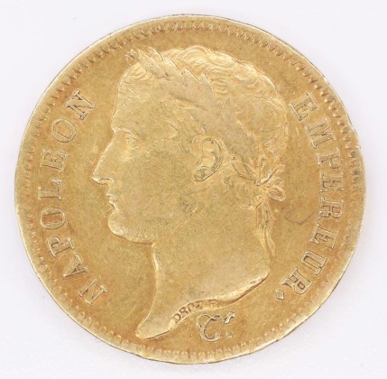 Münze: 40-Francs-Stück des Ersten Kaiserreichs Frankreich, geprägt in Paris zur Zeit von Kaiser Napoléon I. (1804–1814/15), aus dem Nachlass von Karl Asmund Kappeler (1844–1924), Kaufmann in Kolumbien