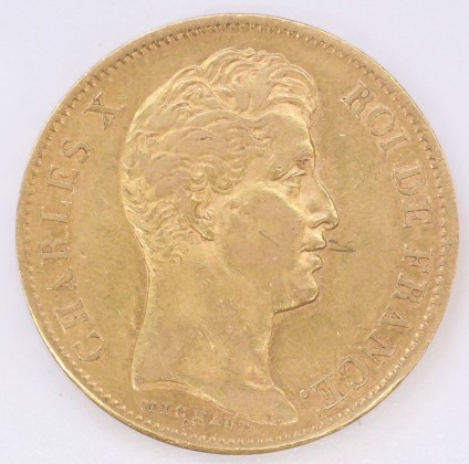 Münze: 40-Francs-Stück des Königreichs Frankreich, geprägt in Paris zur Zeit von König Karl X. (1824–1830), aus dem Nachlass von Karl Asmund Kappeler (1844–1924), Kaufmann in Kolumbien