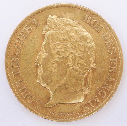 Münze: 40-Francs-Stück des Königreichs Frankreich, geprägt in Paris zur Zeit von König Louis-Philippe I. (1830–1848), aus dem Nachlass von Karl Asmund Kappeler (1844–1924), Kaufmann in Kolumbien