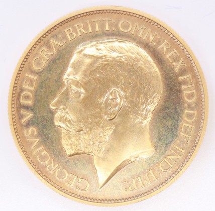 Münze: 5-Pfund-Stück des Vereinigten Königreichs, geprägt in London zur Zeit von König George V. (1910–1936), aus dem Nachlass von Karl Asmund Kappeler (1844–1924), Kaufmann in Kolumbien