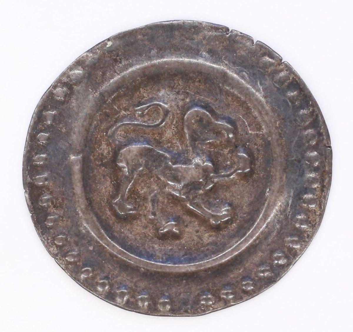 Vs.: In Wulst- und Perlkreis nach rechts schreitender Löwe mit Adlerkopf und langem Schweif.