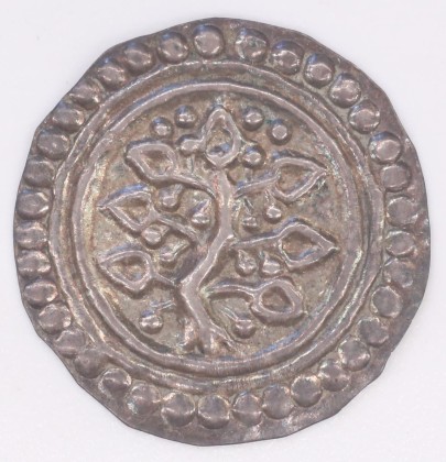 Brakteat, einseitig geprägter runder Silberpfennig, sogenannter Bodenseebrakteat.