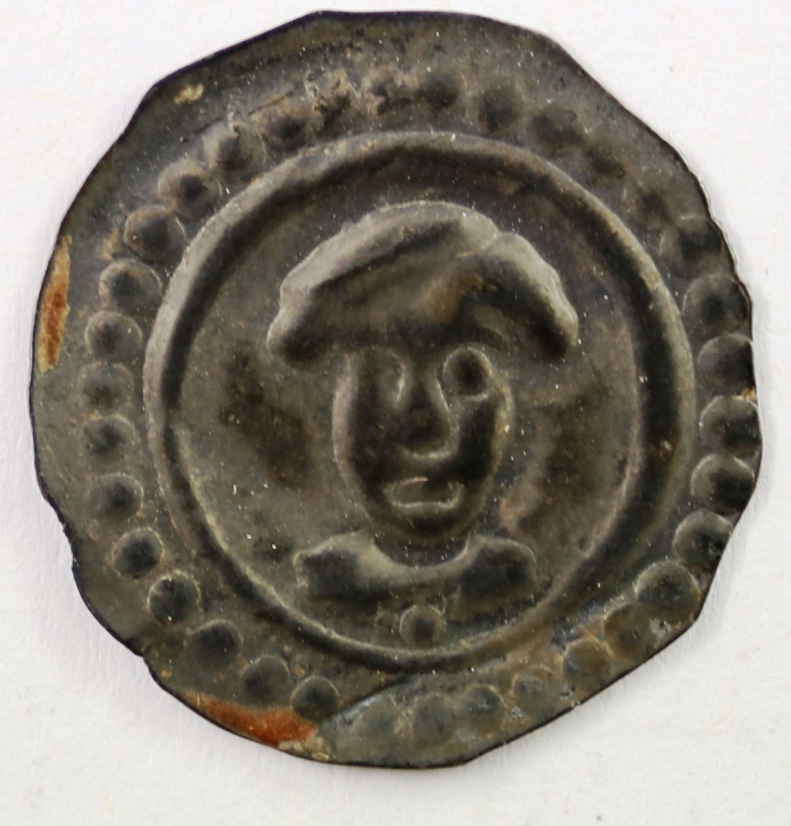 Brakteat, einseitig geprägter runder Silberpfennig, sogenannter Bodenseebrakteat.