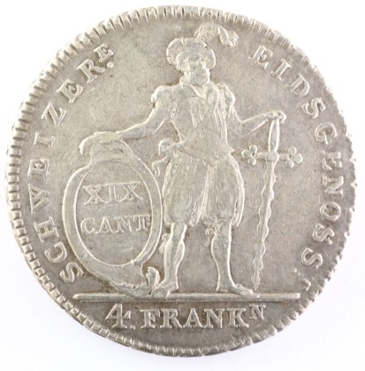 Seit dem Ende des 18. Jhs. prägten eine Reihe eidgenössischer Orte, ab 1803 die Kantone, grosse Silbermünzen im Wert von 40 Batzen. Diese Münzen waren allgemein als Neutaler bekannt. Ihre Bezeichnung bezog sich ursprünglich auf die französischen Écu zu 6 livres (grosse Silbermünzen), die ab 1726 in beträchtlicher Anzahl ausgegeben worden waren. Auch in der Schweiz waren französische Écu in Umlauf, wo Ende des 18. Jhs. ein Écu zu 40 Batzen gehandelt und als Neutaler bezeichnet wurde. Die wertgleichen Stücke der eidgenössischen Orte bzw. Kantone wurden im Volksmund daher ebenfalls Neutaler genannt.