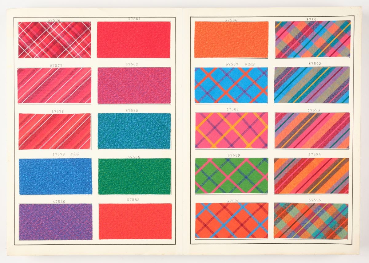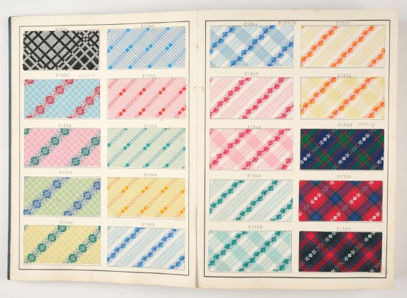 Musterbuch der Weberei Sirnach, für Baumwoll- und Viskosestoffe mit den Mustern Uni, Rayé, Faconné, Piqué, Vichy und Küchenkaro