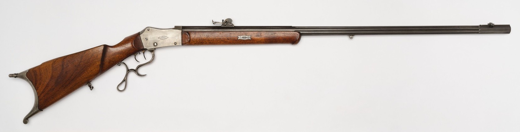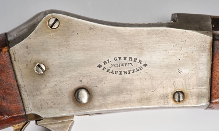 Stand- oder Scheibenstutzer waren präzise Waffen mit Stecherabzug für das sportliche Schiessen in einem Schiessstand. Sie erlebten im 19. Jh. grosse Popularität bei den zahlreichen Schützenfesten, die überall in der Eidgenossenschaft durchgeführt wurden. Das vorliegende Exemplar fertigte der Frauenfelder Büchsenmacher Daniel Gehrer an, dessen Berufsbezeichnung auch Kleinmechaniker war. Im Auftrag des Eidgenössischen Militärdepartements reparierte er Waffen der Armee.