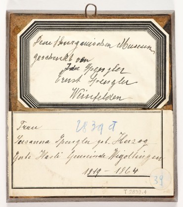 Wachsporträt: Susanna Spengler-Herzog (1819–1864), aus der Gerberei im Hasli in der Gemeinde Wigoltingen
